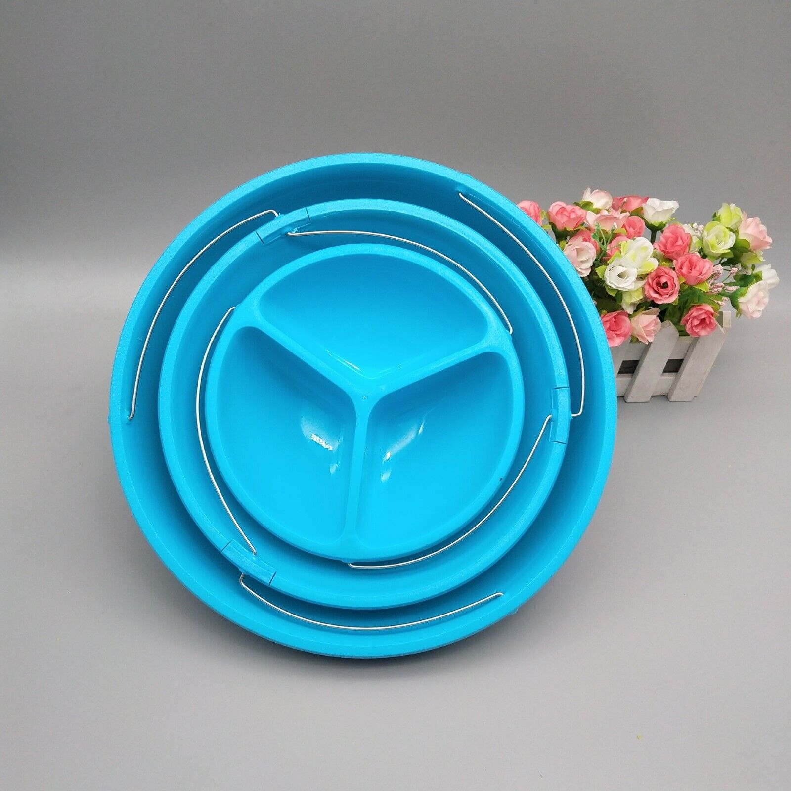 Ce bol de fête pliable à 3 niveaux pratique est parfait pour une utilisation en extérieur – camping et caravaning, pique-niques, barbecues, fêtes et événements. Fabriqué à partir de plastique de qualité sans BPA, ce bol de fête unique permet d’économiser de l’espace sur la table en fournissant trois niveaux et s’effondre pour économiser de l’espace de stockage dans le placard. Le bol s’assemble et s’effondre en quelques secondes avec une simple torsion.En bas, il y a un grand bol de 28 cm de diamètre pour vos collations, chips, crackers, pains, fruits, etc. préférés, au milieu il y a un autre bol de 23 cm de diamètre et en haut se trouve un bol supérieur cloisonné de 18 cm de diamètre avec trois sections pour les trempettes. noix, olives, sucettes, tout ce que vous voulez ! Idéal pour les collations, les collations et les fruits de l’après-midi au camping.Une fois repliés, les bols sont emboîtés et maintenus solidement en place par des aimants cachés pour un rangement facile et compact.Bol supérieur : 18 cm de diamètre x 5 cm de haut, divisé en 3 sectionsBol central : 23 cm de diamètre x 5 cm de hauteurBol inférieur : 28 cm de diamètre x 8 cm de hautDimensions ouvertes : 28 cm de diamètre x 38 cm de hauteurDimensions plié : 28 cm de diamètre x 8 cm de hauteurPasse au lave-vaisselle dans le panier supérieurSans BPAPoids : 750g